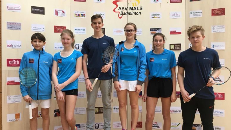 6 Nachwuchssportler fuhren am 17. und 18. Februar zum ersten Mal nach Südtirol, zum Internationalen Turnier in Mals, das auf 1000 Meter Seehöhe liegt. In der schönen neuen Halle fliegen die Federbälle allerdings etwas schneller als gewohnt und zunächst konnten sich unsere Kids nur schwer auf die schnellen Bälle einstellen. Luca hat am Anfang andauernd ins Aus geschossen und Lara hat sich gefreut, dass ihre Clears bis an die Grundlinie gehen….