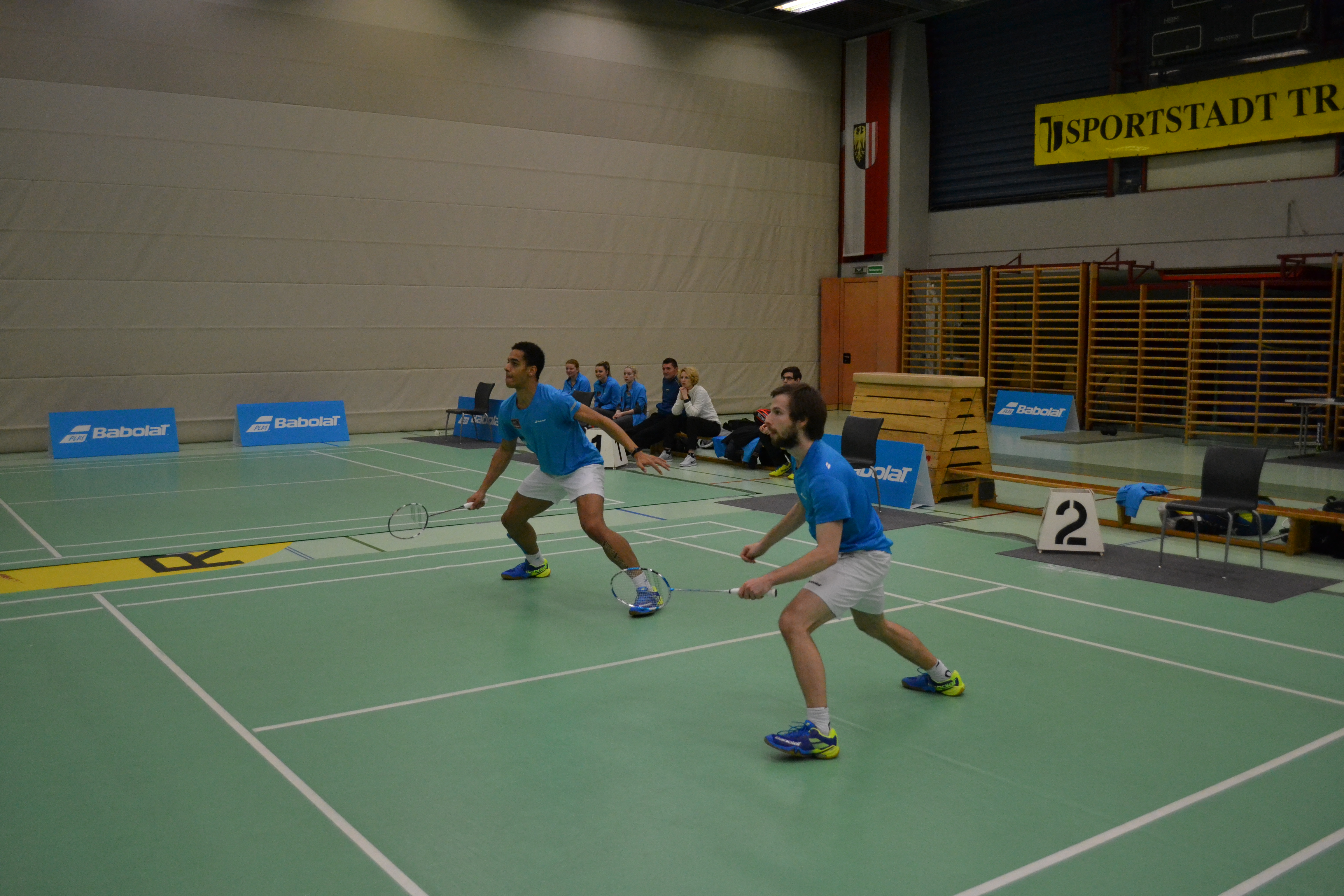Spannender war dann das zweite Herrendoppel: Serov/Filimon verloren den ersten Satz mit 20:22 ganz knapp, der zweite Satz ging knapp mit 21:18 an Traun und im dritten Satz sorgten die beiden für klare Verhältnisse und siegten mit 21:8.